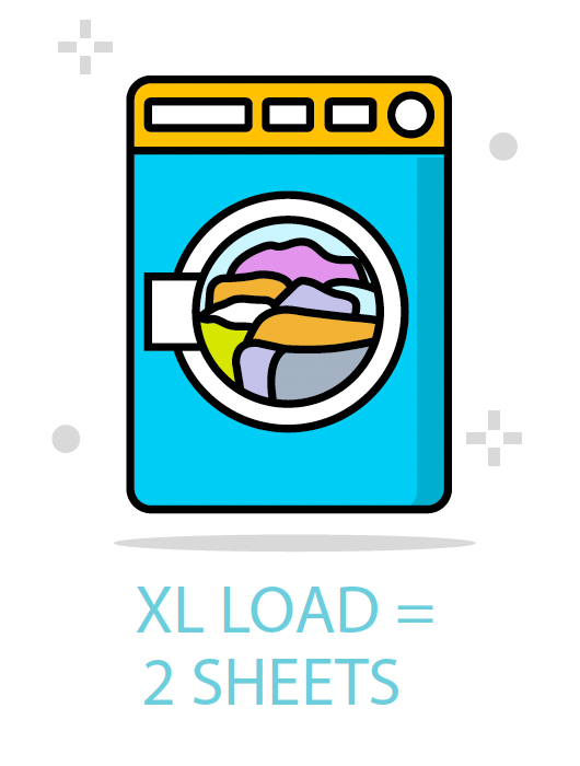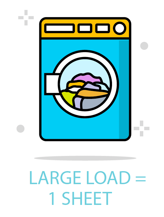 No liquid detergent needed. Our detergent sheets dissolve in water and deliver a powerful mess-free clean. Just toss in and wash.